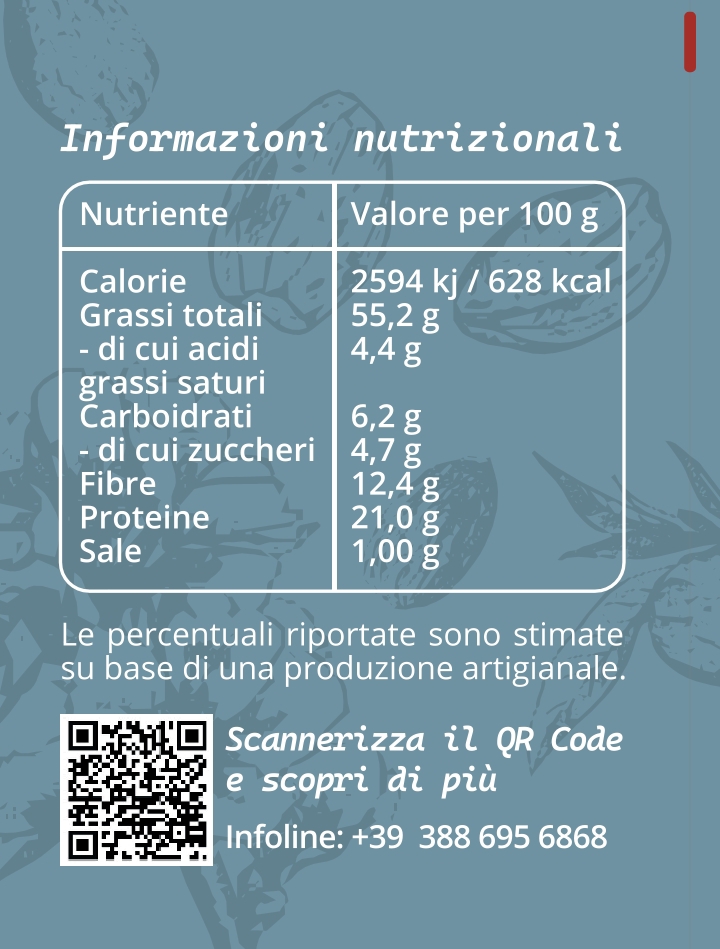 Crema di mandorle arricchita con sale di salgemma integrale, realizzata con ingredienti naturali e senza aggiunta di conservanti. Il gusto delicato e tostato delle mandorle si esalta grazie alla nota minerale del sale, creando un equilibrio armonioso e deciso. Naturalmente priva di glutine e lattosio, è adatta a celiaci, vegani e a chi soffre di intolleranze. Ideale da spalmare, da gustare al naturale o per dare carattere a ricette dolci e salate.